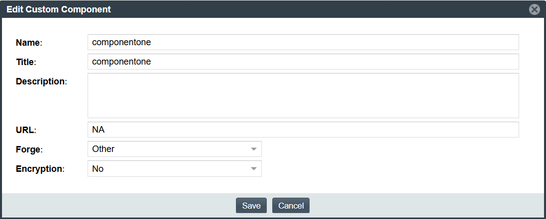 On the Edit Custom Component window, update the component properties as needed. See Custom Component Properties for field descriptions.