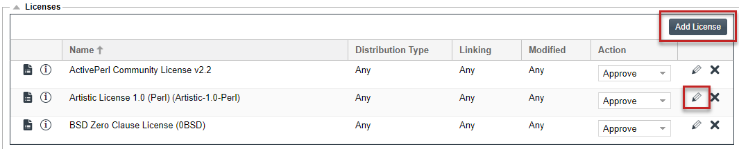 To edit an existing license policy, click the Edit icon