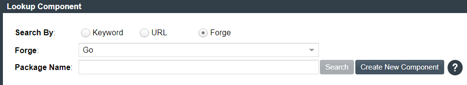 Selecting the Go option from the Forge field drop-down enables you to access the Package Names field that helps you to search for a specific component within the forge by entering the related Go Module name.