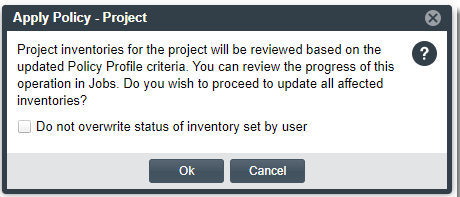To force an automatic review of inventory in the project, click Apply Policy.