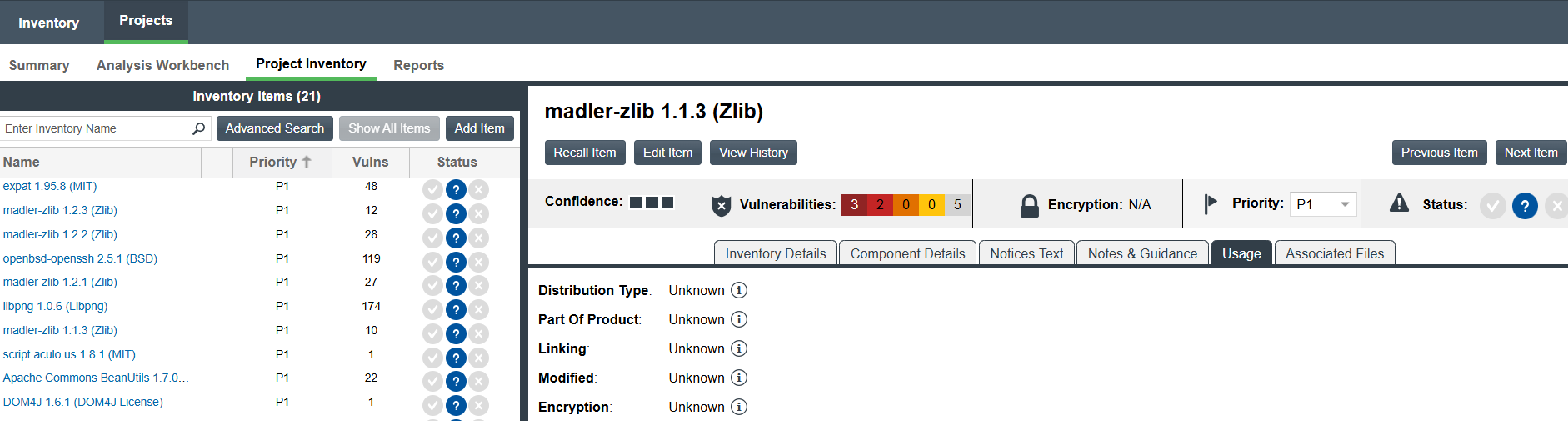 Usage information describes how a software package developed in your organization uses the OSS or third-party component. Usage information is important because it aids auditors and reviewers in determining how closely to monitor an inventory item for intellectual property (IP) and security risks and whether to approve or reject the item, create tasks for its remediation, and issue alerts and notifications pertaining to the item. Usage properties can also help users determine whether an inventory item should be included in Third-Party Notices and what steps need to be taken to satisfy license obligations and conditions of use. Usage information can help to identify license conflicts and compatibility issues.