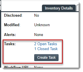 A task can also be created automatically in an automated workflow process (along with external work items) based on review and remediation options up for the project, as described in Updating Inventory Review and Remediation Settings for a Project. Users with proper permissions can then manage these tasks and manually created tasks, using the procedures described in this section.
