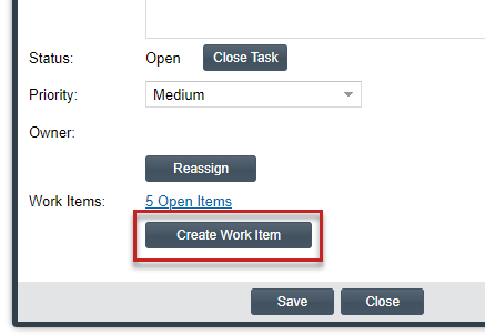 At the bottom of the Task Details dialog, click the Create Work Item button.